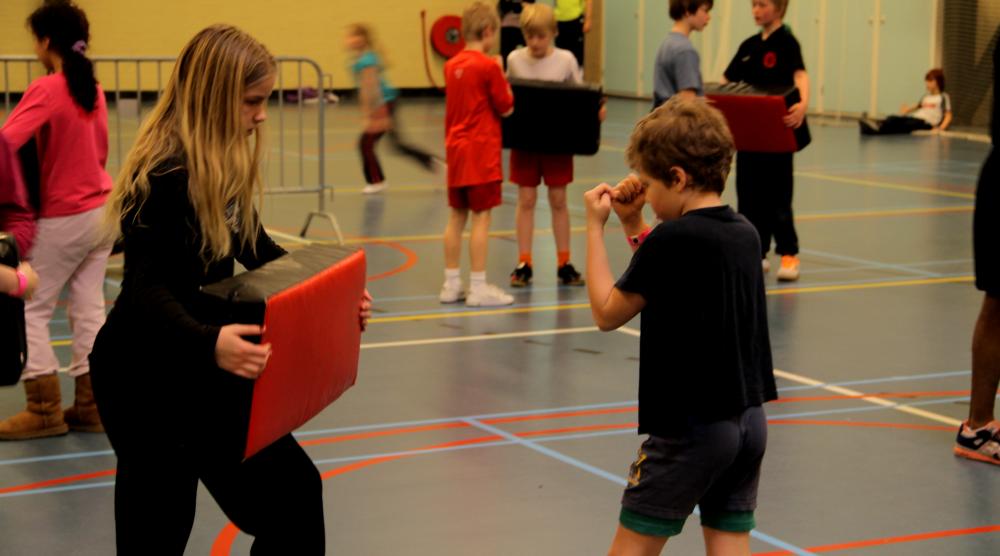 Wanneer de deelnemers goed warmgedraaid zijn gaan we aan de slag met de belangrijkste onderdelen van het kickboksen. We beginnen met de gevechtshouding omdat dit de basis is van het kickboxen waarbij balans, stabiliteit en het voetenwerk aan bod komen. Vervolgens besteden we uitgebreid aandacht aan verschillende verdedigingstechnieken, stoottechnieken, traptechnieken en combinaties aan de hand van verschillende leuke oefeningen waarbij respect voor elkaar centraal straat.